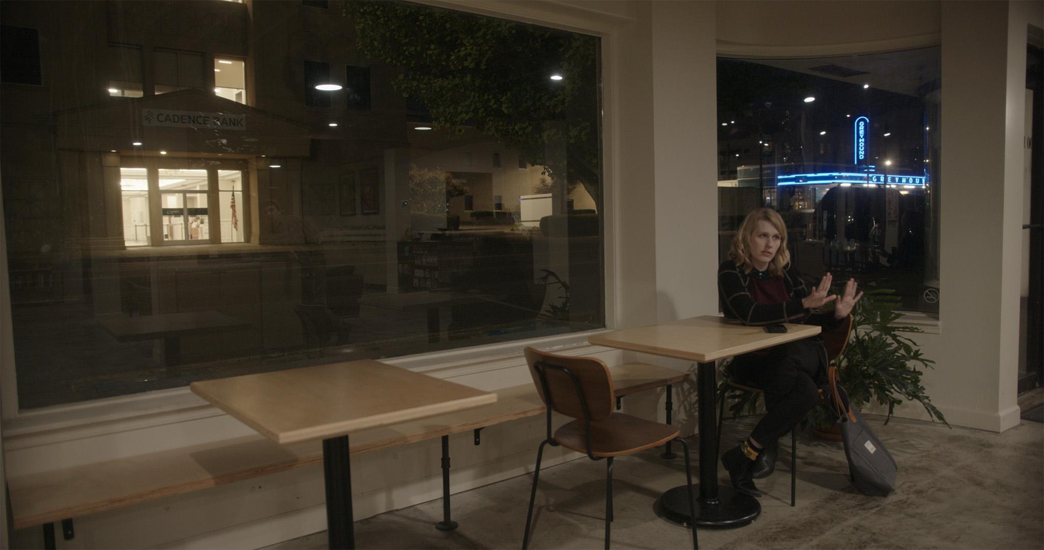I will be the cinematographer on a small short film scheduled to begin production in December. There is a scene that takes place inside a coffee shop at night. One location we are considering has these huge plate glass windows that look out on a city street with a neon lit bus station across and down the street. I love being able to see the city lights and activity behind the table where the two characters would be sitting. However, I am concerned about reflections of the camera/crew in the windows… especially on a symmetrical master shot where the camera is straight in front of the table and also on any wide shots. My initial thought on lighting the table was to use a china ball hung over the table between the actors and the wall/window as my main source and then build from there. Does anyone have any tips or advice on getting rid of reflections when setting up a shot like this? How much would a polarizing filter help? I thought about having something on the table that could block the camera from the window for the straight on 2 shot, but not sure if I could have anything large enough to do the job. Maybe I need to look for a new location or just have the actors at a table in the middle of the space instead of against the windows. I have attached a frame grab I took of the location last night while our director was speaking with the shop owner… (not lit or color graded, etc.) Any advice is greatly appreciated!