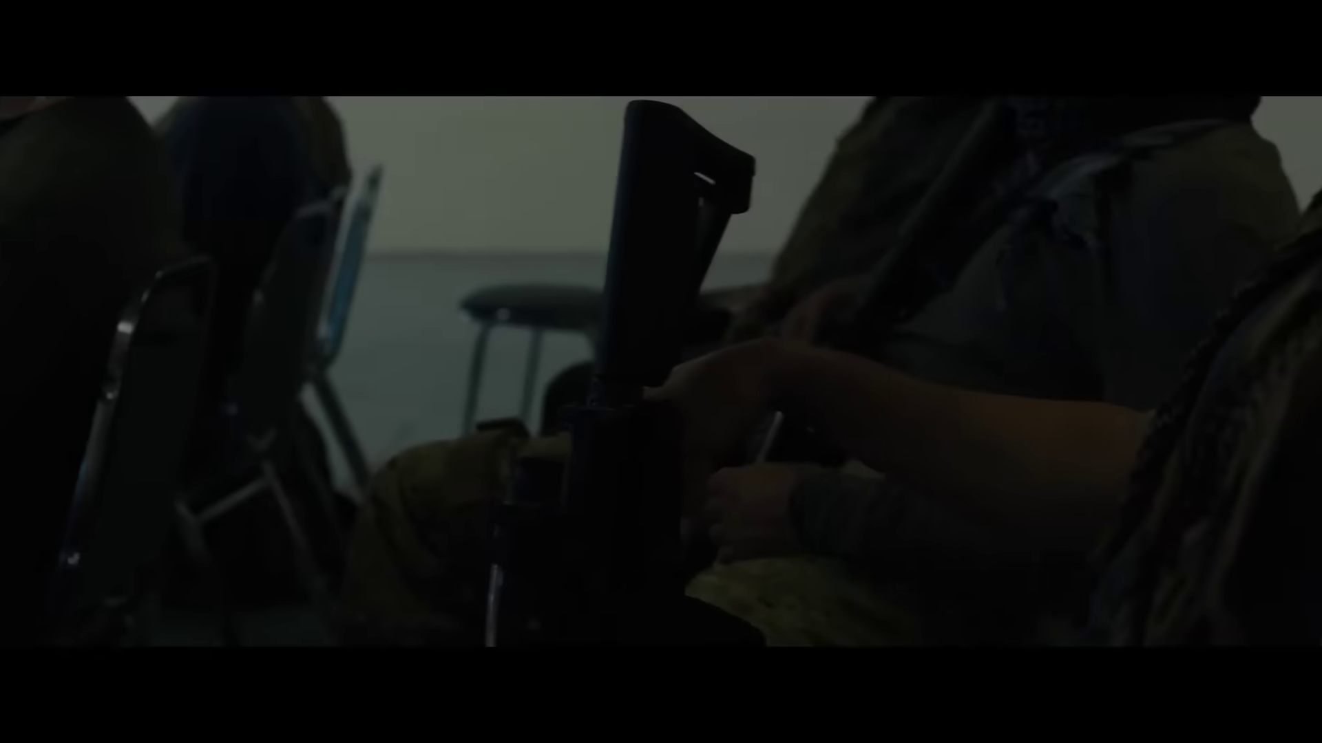 I’ve analyzed the scene so many times, and I always bring up this scene when discussing POV with my director. I love the camera puts us in Kate’s perspective through her close up, and her POV shot. But I’ve never noticed that a shot lit for a different moment has sneaked in. Looking closely, I’m assuming it’s the shot of firearms panning into the soldiers, by looking at the reflections on the chairs and sunglasses.